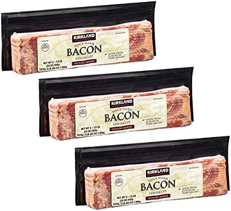 Amazon Com Gourmet Kitchn Kirkland Signature Thick Sliced Bacon Center Cut Hickory Smoked Pack Of 3 Six 1 5 Lb Packages 9 Lbs Total Gluten Free Grocery Gourmet Food